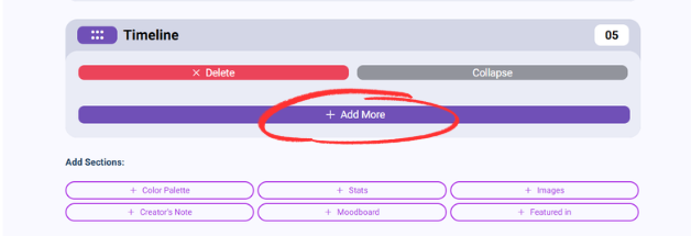 When you’re ready to add a new event to the timeline, scroll down and click the “add more” button.