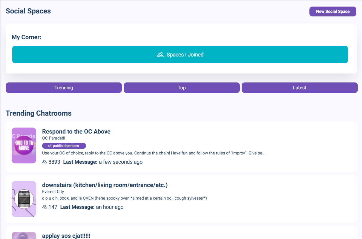 Social Spaces on CharacterHub